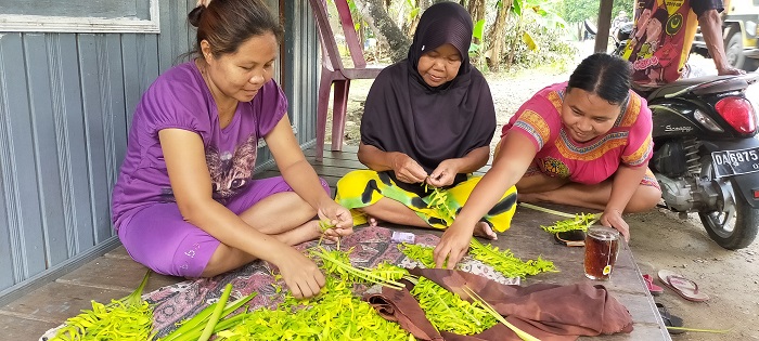 Warga Kambang Basar (Kambas) di Desa Tabihi, Kecamatan Padang Batung, HSS bertahan dengan mengarang atau merangkai bungka kenanga