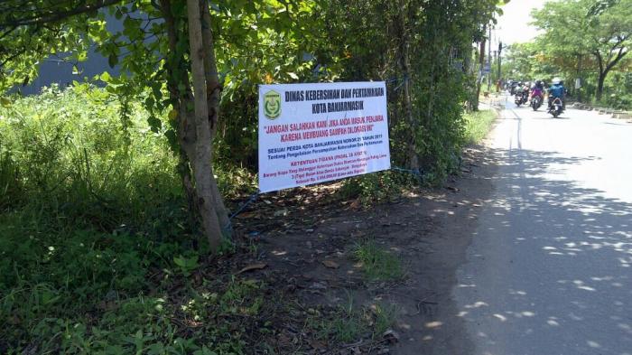 Peringatan bagi warga di sekitaran Jalan Perdagangan Banjarmasin Utara agar jangan buang sampah sembarangan, pasalnya ada tempat di lokasi ini dilaran