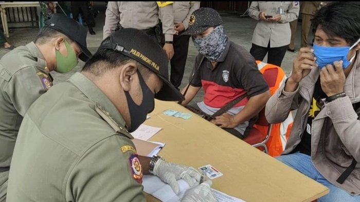 Sebanyak 20 orang pengguna jalan Pramuka, depan Terminal Km 6 Banjarmasin, terjaring oleh Petugas Gabungan Penegakkan Perwali 68 Tahun 2020