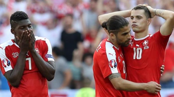 Pelatih Swiss, Vladimir Petkovic, turut bersedih karena kekalahan timnya dari Polandia, dalam laga babak 16 besar Piala Eropa 2016. .