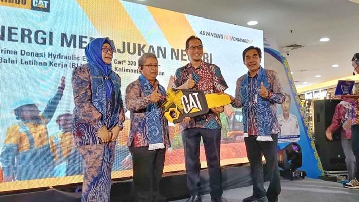 PT Trakindo Utama Banjarmasin menyerahkan donasi berupa satu unit Excavator CAT 320GC sebagai peralatan pelatihan untuk BLK Kalsel