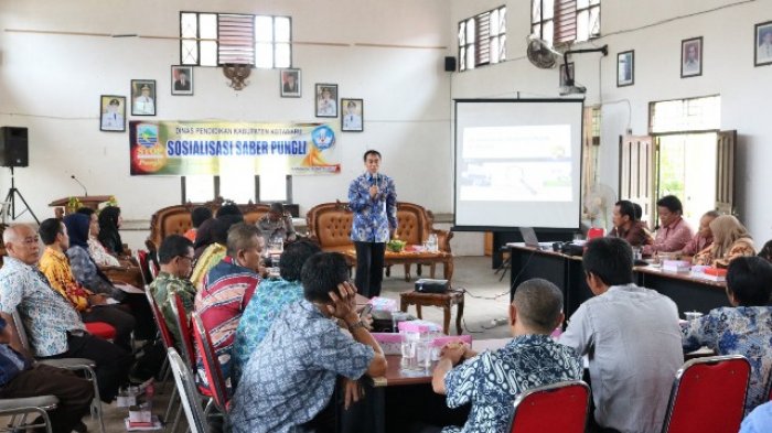 Tidak kurang 50 tenaga pengajar dari beberapa sekolah memenuhi Aula kantor Dinas Pendidikan (Disdik) Kotabaru.