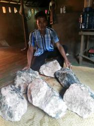 Bongkahan-bongkahan batu berwarna pink itu ditemukan kelompoknya di bukit Manianggang Desa Awang Bangkal Kecamatan Aranio