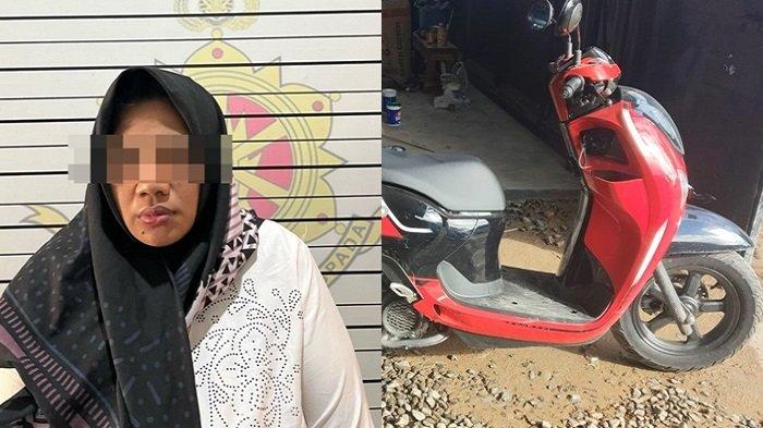 Perempuan residivis berinsial AL (44) warga Kelurahan Jangkung, Kecamatan Tanjung, Kabupaten Tabalong diringkus karena gelapkan motor sewaan