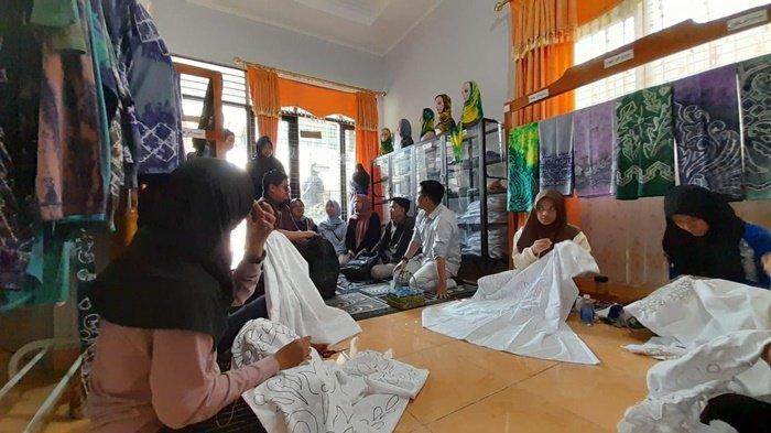 canda anak-anak disabilitas yang tengah menganyam manik-manik dan membatik kain sasirangan terdengar sudut jalan di belakang SMA Negeri 2 Banjarmasin