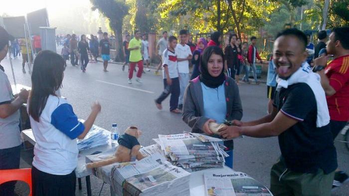 Ada yang spesial di stand Banjarmasin Post di acara car free day Jalan AS Musyaffa, Minggu (5/3/2015) pagi.