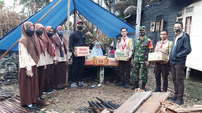SWK Kodim 1002/Barabai Beri Bantuan Sembako dan Pakaian untuk Korban Kebakaran Desa Banua Asam HST