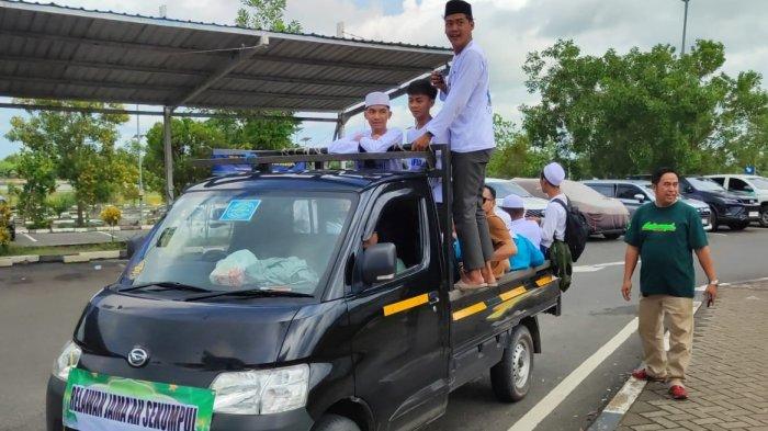 Taksi Terjebak Macet, Jemaah Haul Guru Sekumpul Terpaksa Naik Pikap Dari Bandara Syamsudin Noor