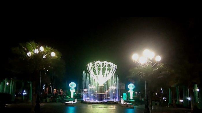 lampu yang terpasang di air mancur tersebut dapat menyala dengan warna yang bergantian.