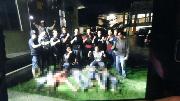 Geger, Usai Baku Tambak Tim Antibandit Polresta Bandar Lampung Pose dengan 5 Mayat Begal