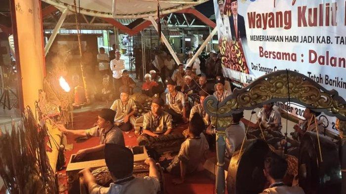Pagelaran seni tradisional Wayang Kulit Banjar bertempat di Taman Pasar Lawas (0 Kilometer) Pelaihari,warga antusias menonton