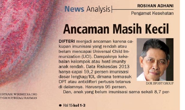 DIFTERI menjadi ancaman karena cakupan imunisasi yang rendah atau belum mencapai Universal Child Immunization (UCI).